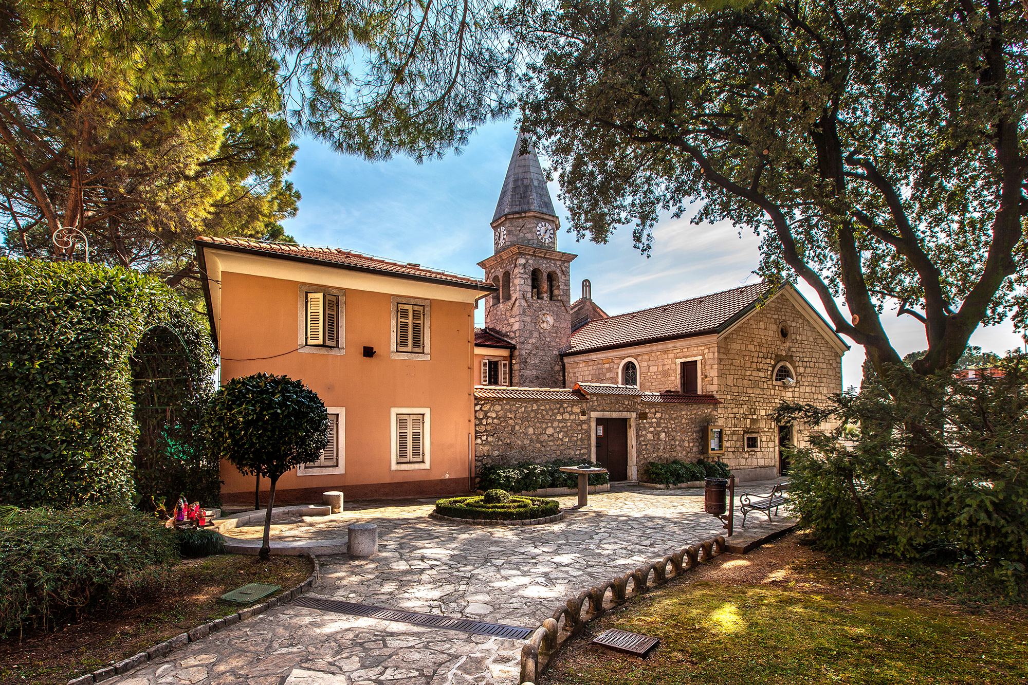 Since earliest times, when it still stood isolated, the abbey was a site where court trials were held and served as a fairgrounds that on St. Jacob’s Day attracted visitors from the surrounding countryside to dances and sales and purchases of goods, and located in its vicinity were the first burial-ground for the dead of Opatija, whereas in the 19th century this was also the site of the first school in Opatija. The building passed from hand-to-hand of a whole series of religious orders, from the Benedictines and Augustinians to the Paulists and Jesuits. Today, besides prayers and masses, chamber concerts are also held here.